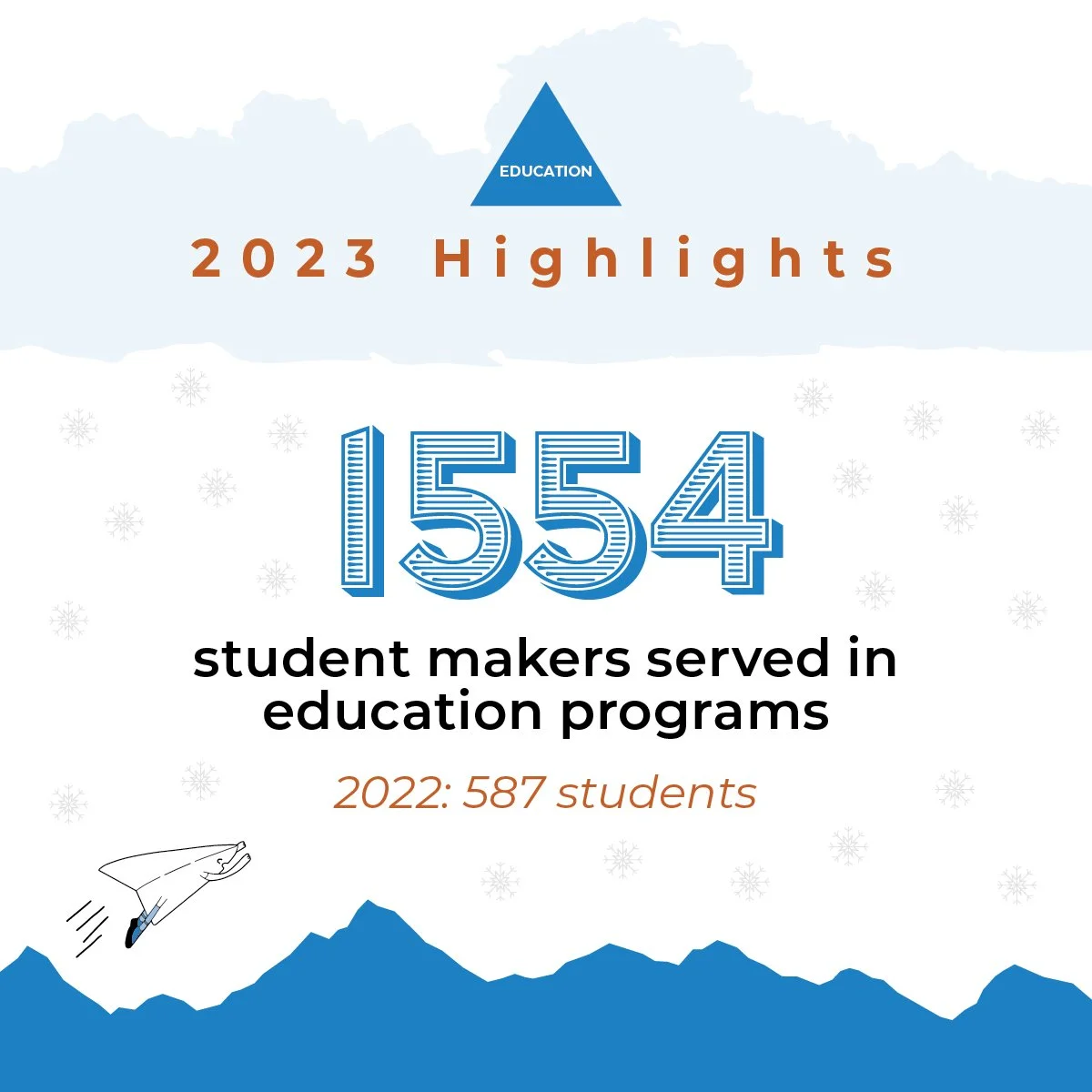 I find myself in awe of all that we have accomplished. It’s fair to say that 2023 has been a year of tremendous growth for TMC. From expanding our programming and our community partners, to fostering innovation in our new construction project, we have worked together to grow this organization to be SO MUCH MORE THAN A MAKERSPACE.