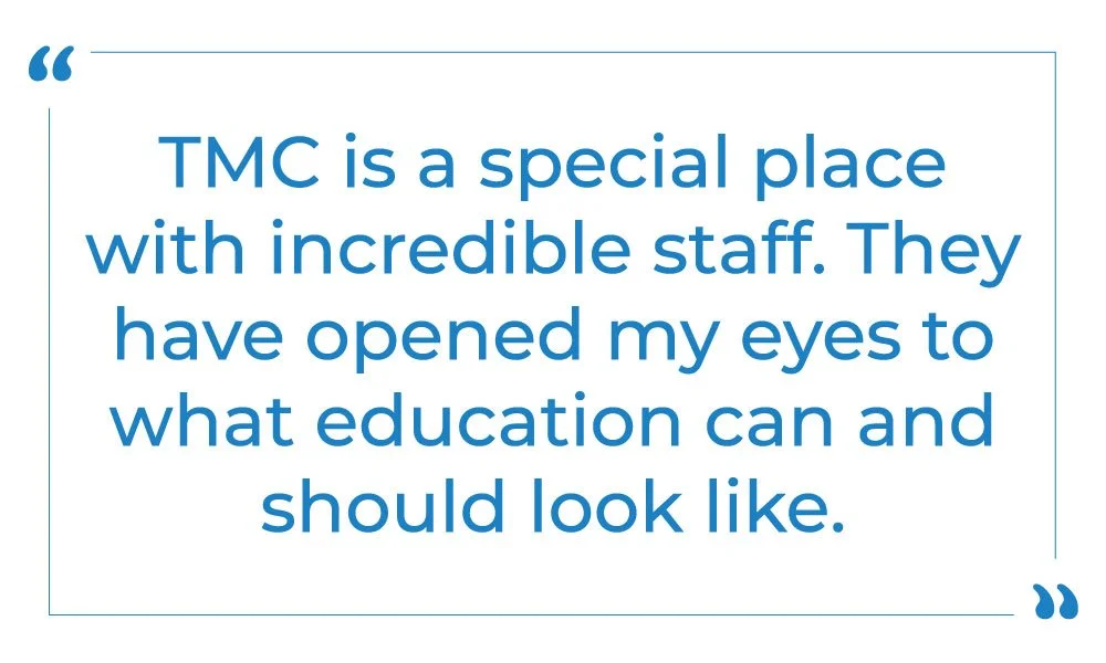 TMC is a special place with incredible staff. They have opened my eyes to what education can and should look like. They create a space for everyone to feel safe, be creative, heal, process, and relax. They have a beautiful mindset for growth and creativity without expectations or fear of failure which makes being around the staff fun. Most importantly, they are inspiring. If I can get excited about CTE, anyone can.